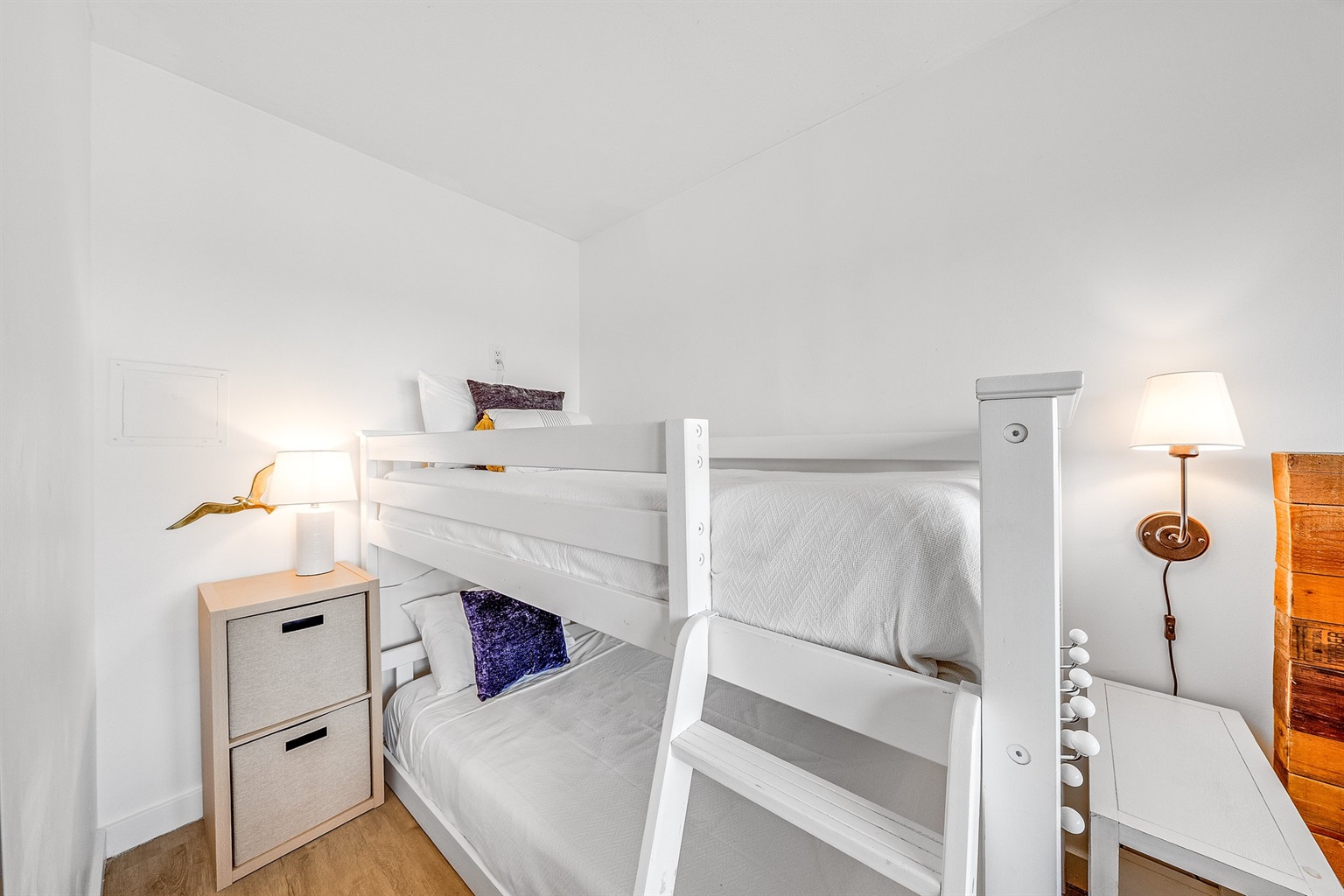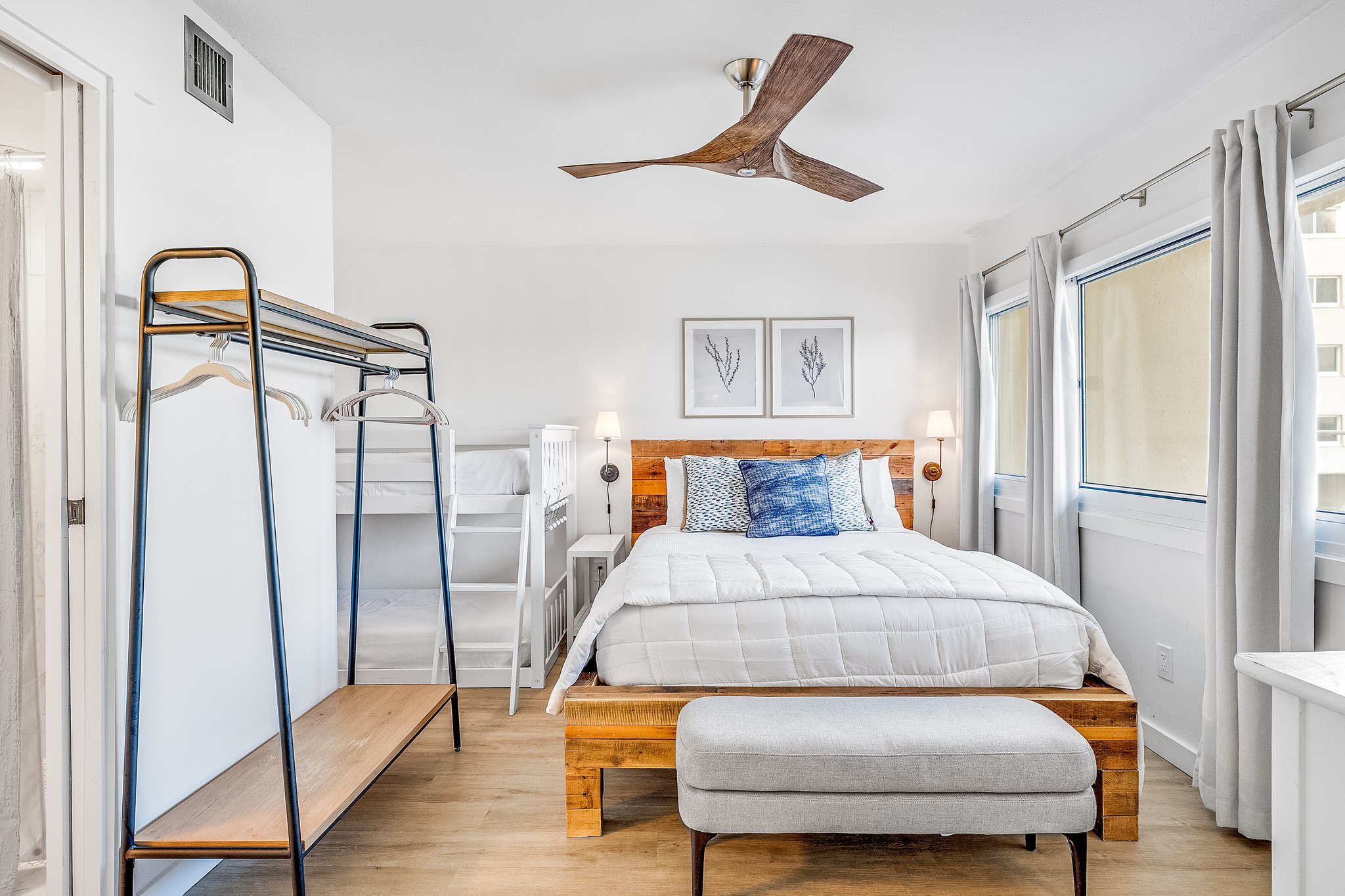 decorative pillows and throw blankets have been removed from the beds to provide the