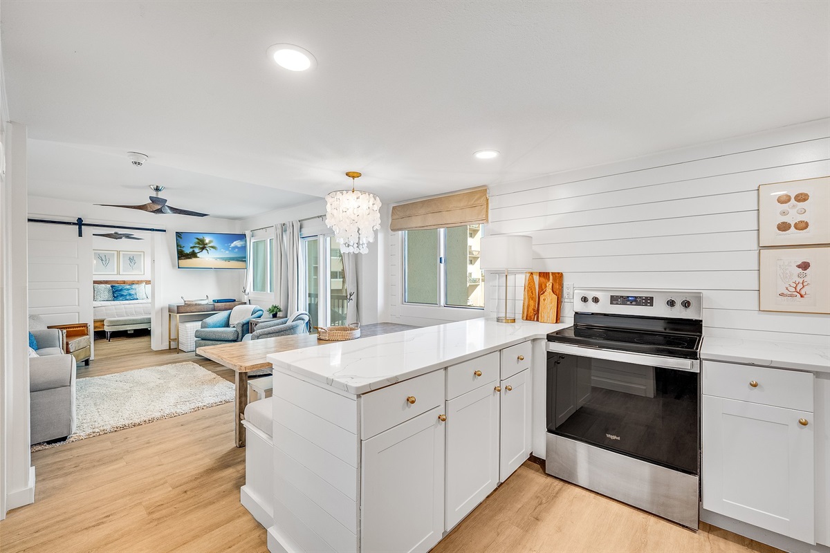 Living room + dining + full kitchen with plenty of space to gather