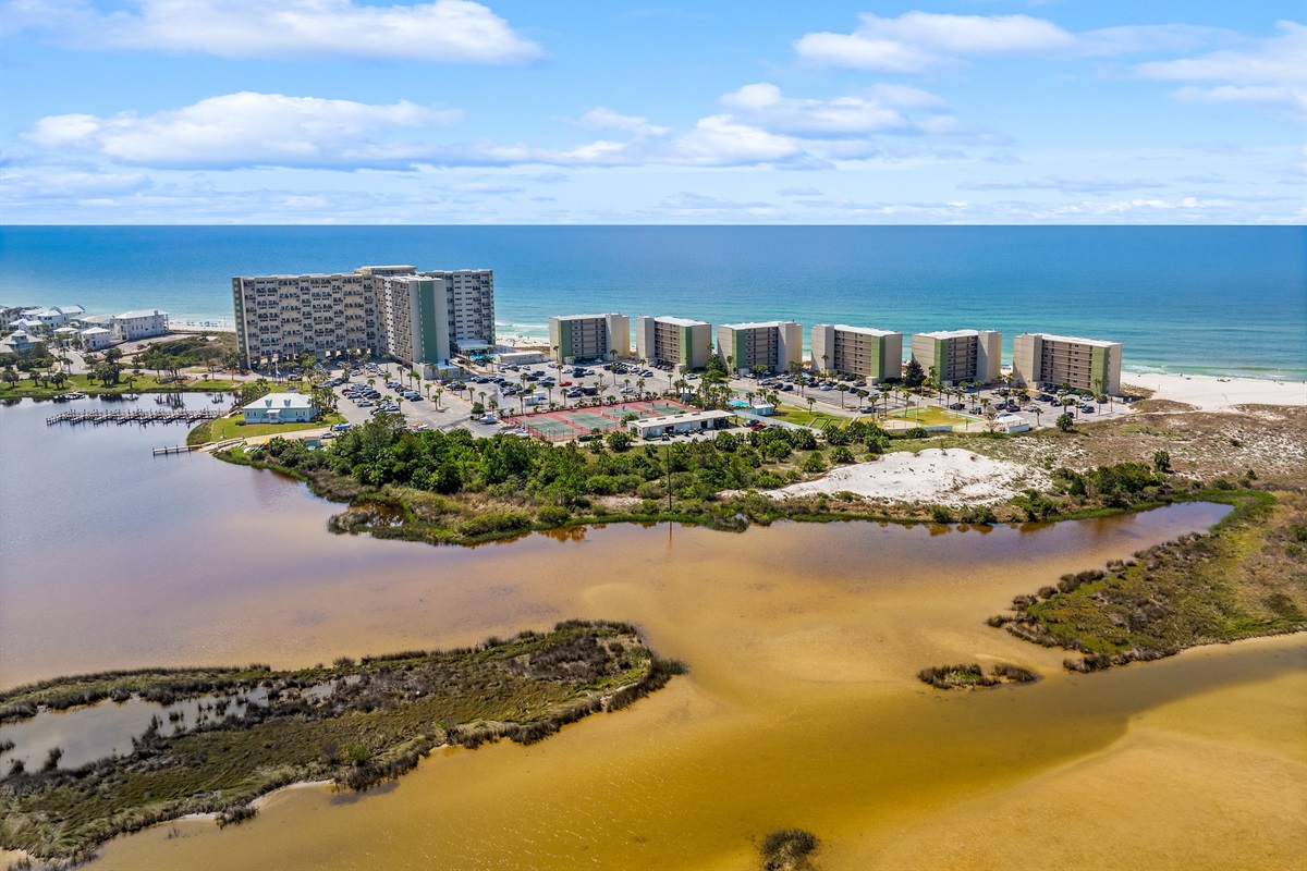 Emerald Inlet at Pinnacle Port offers a truly unique coastal experience, perfectly positioned between the sugar-white sands of the Gulf of America and the serene waters of Lake Powell. Unlike typical condos, our home features breathtaking dual views: enjoy your morning coffee watching the waves from the master balcony and unwind in the evening with a sunset over North America's largest coastal dune lake (~800 acres). With a spacious three-bedroom layout, updated modern appliances and a secured gated community atmosphere, Emerald Inlet provides a sophisticated yet inviting refuge for those who want the best of both worlds.
