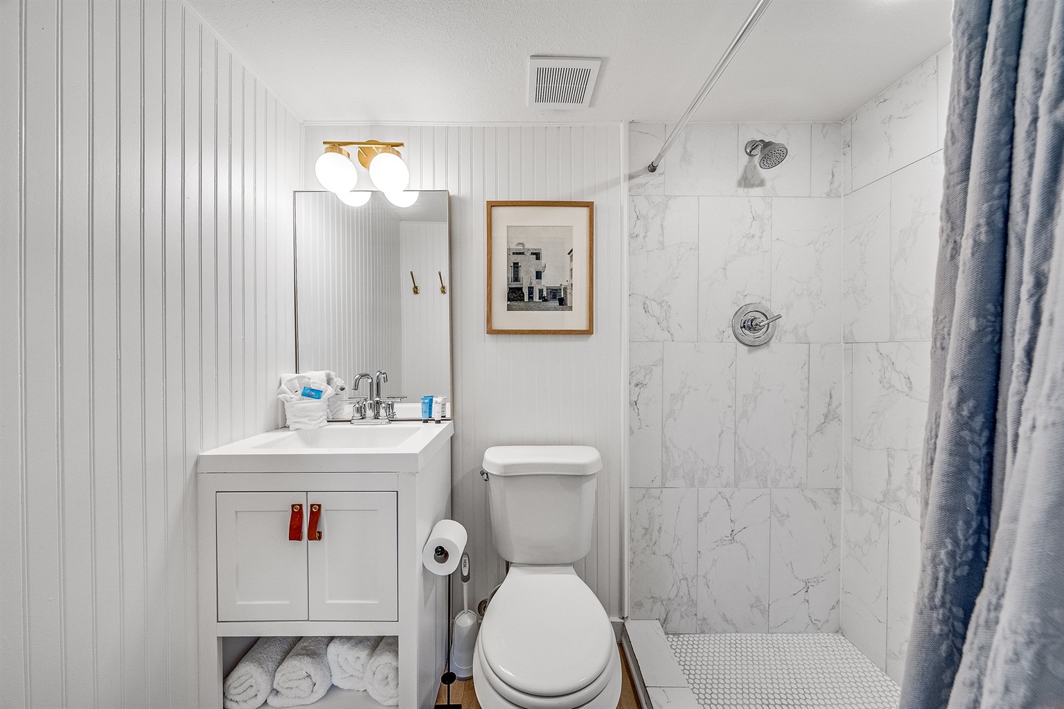 Full hall bath conveniently located just outside the upstairs guest room