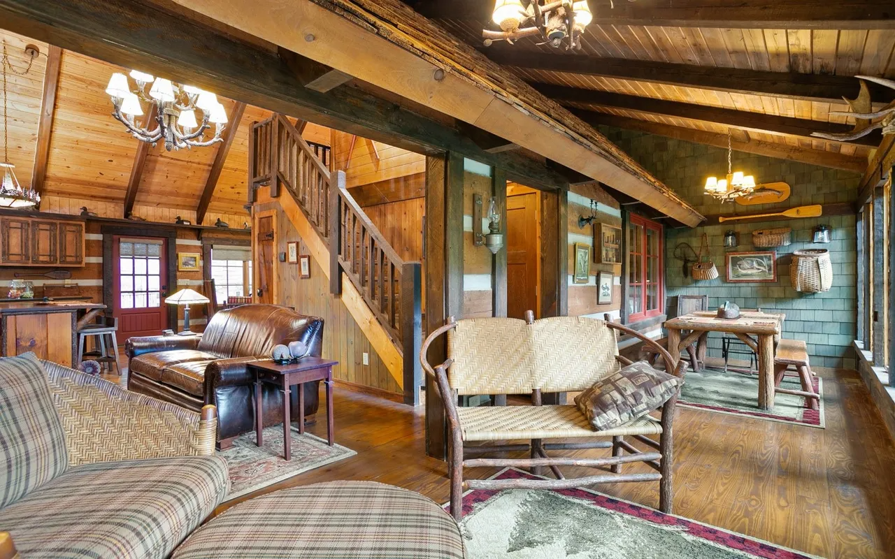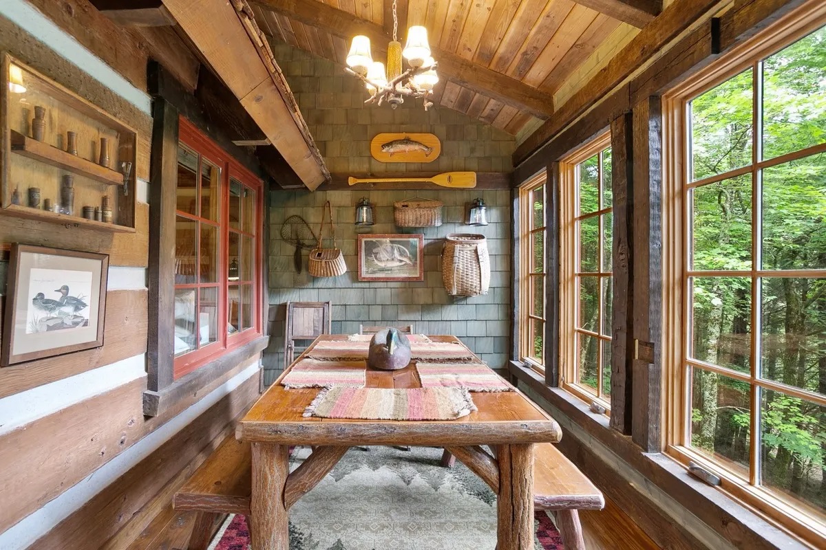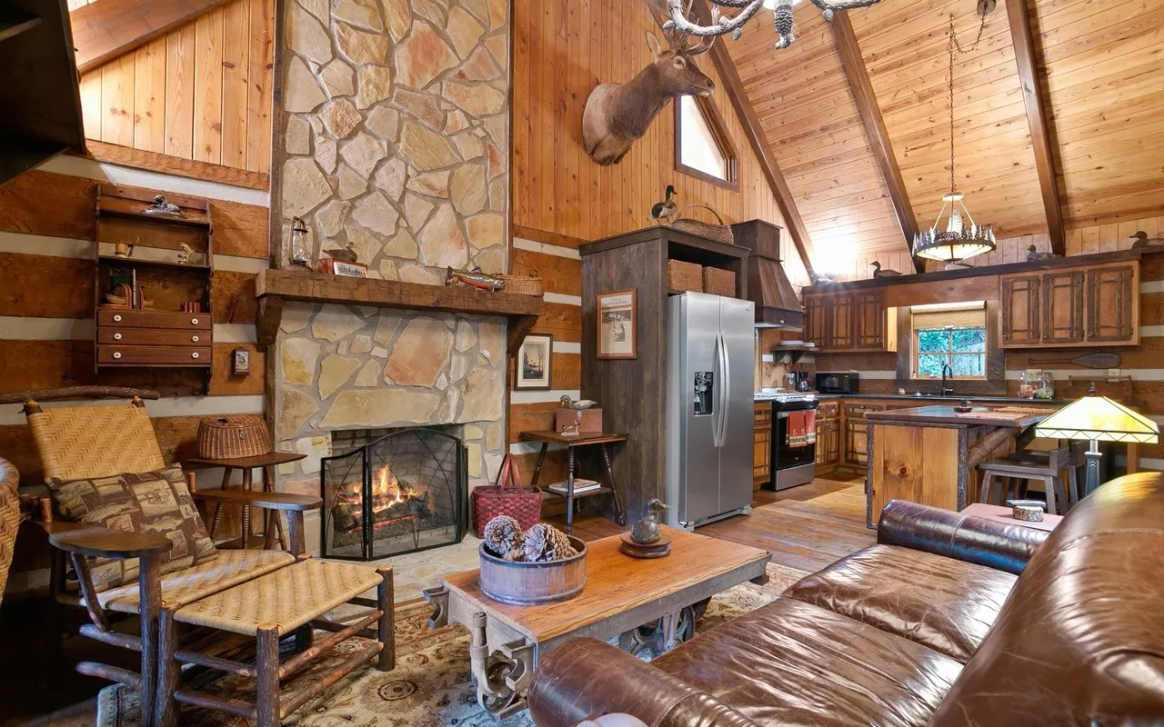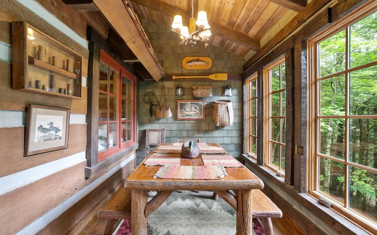 • Sun-Drenched Living: A highlight of the cabin is the additional sunroom and dining area, bathed in natural light through expansive windows that offer panoramic views of the river. It’s the perfect spot for your morning coffee or an afternoon of reading while listening to the "loud rushing water" just outside.
