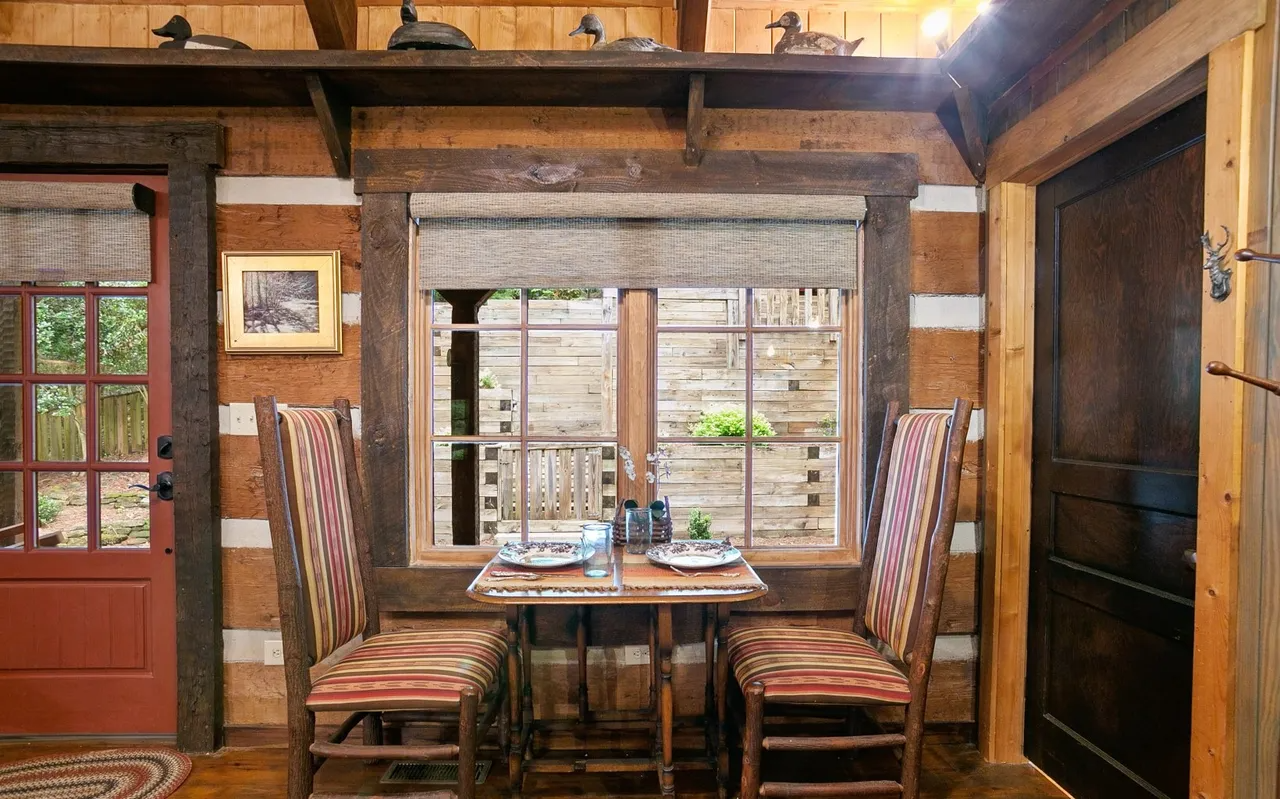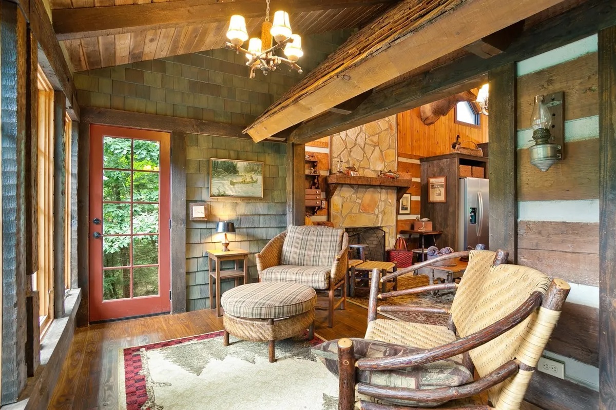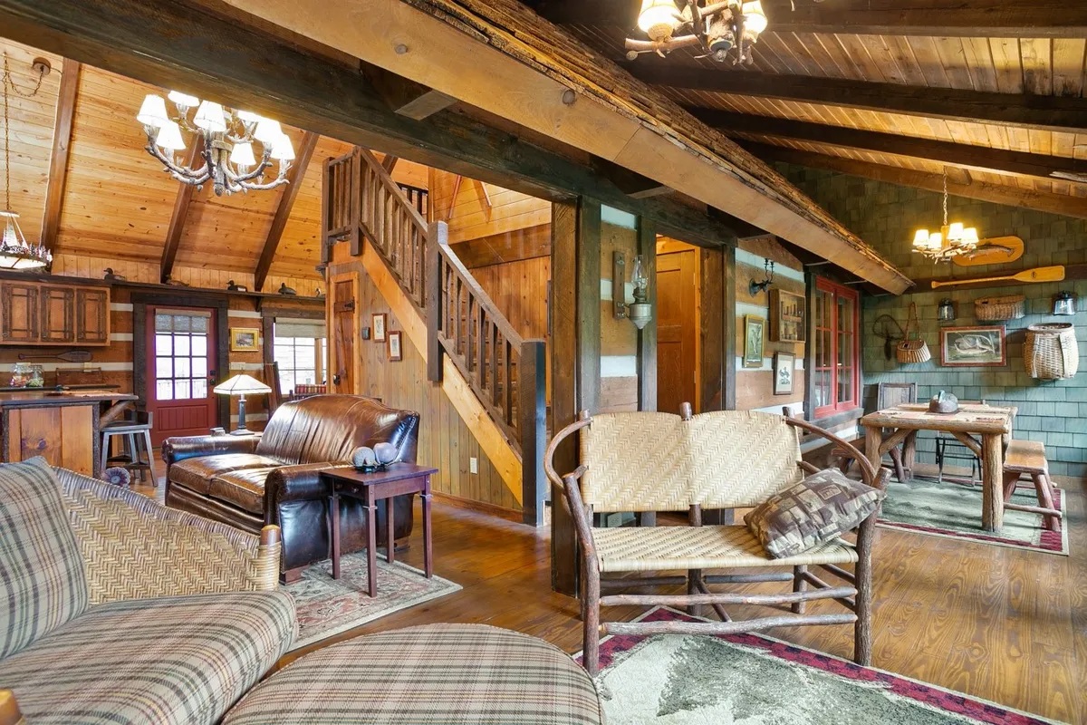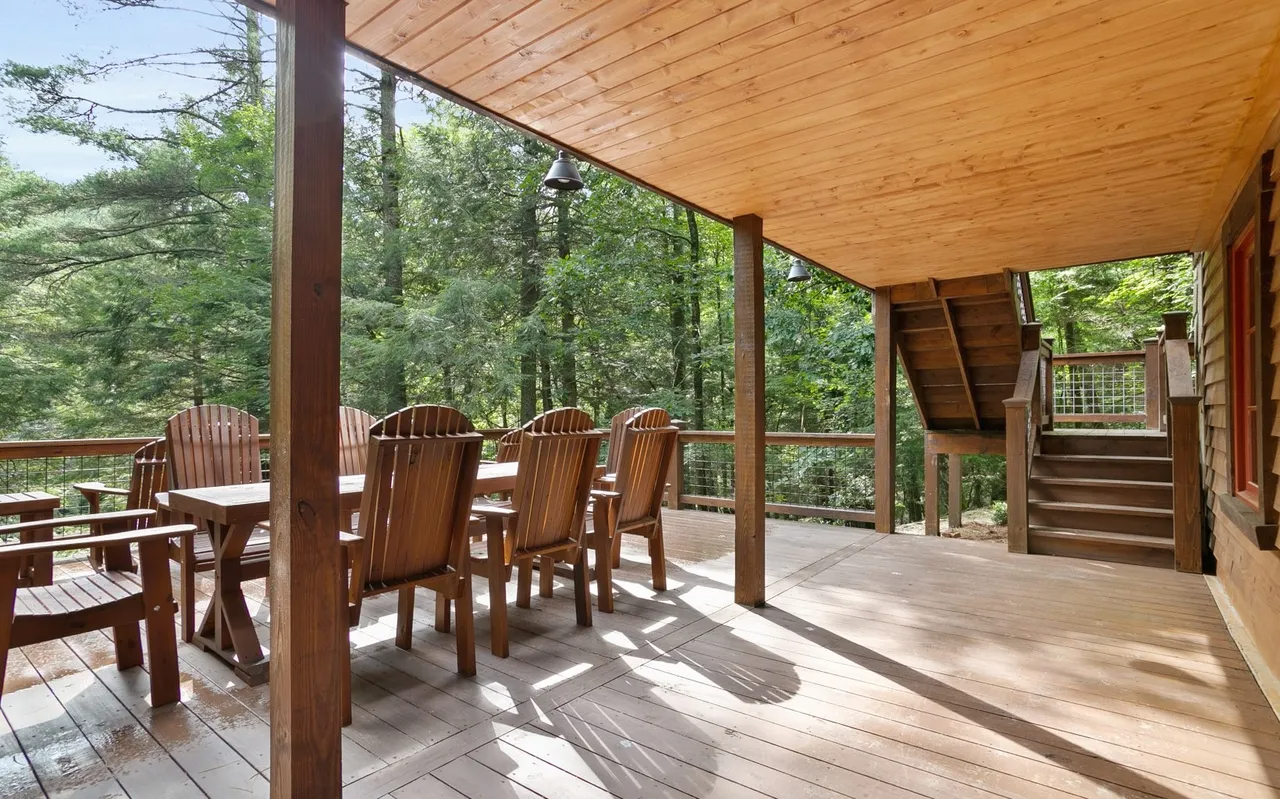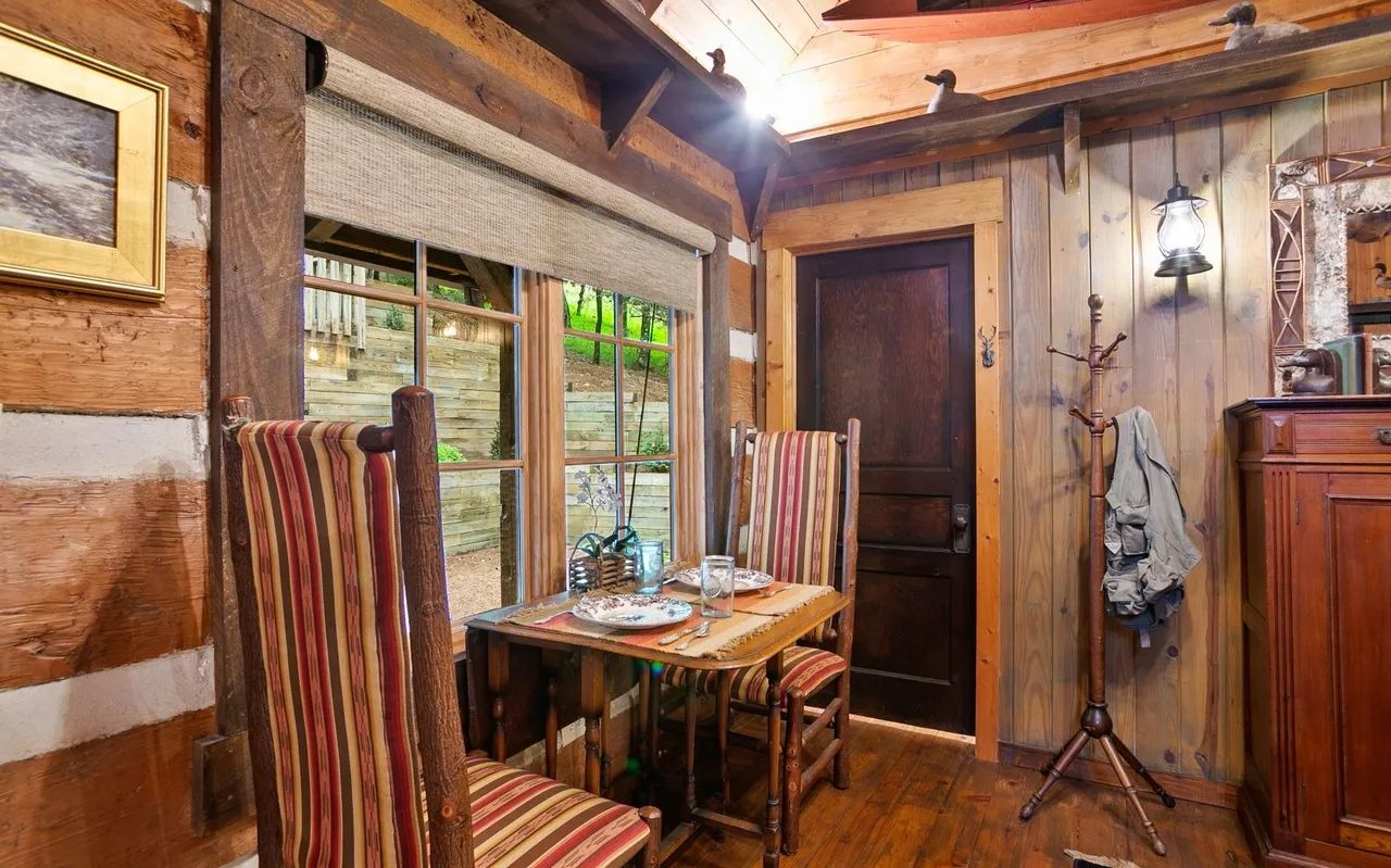 • Sun-Drenched Living: A highlight of the cabin is the additional sunroom and dining area, bathed in natural light through expansive windows that offer panoramic views of the river. It’s the perfect spot for your morning coffee or an afternoon of reading while listening to the "loud rushing water" just outside.