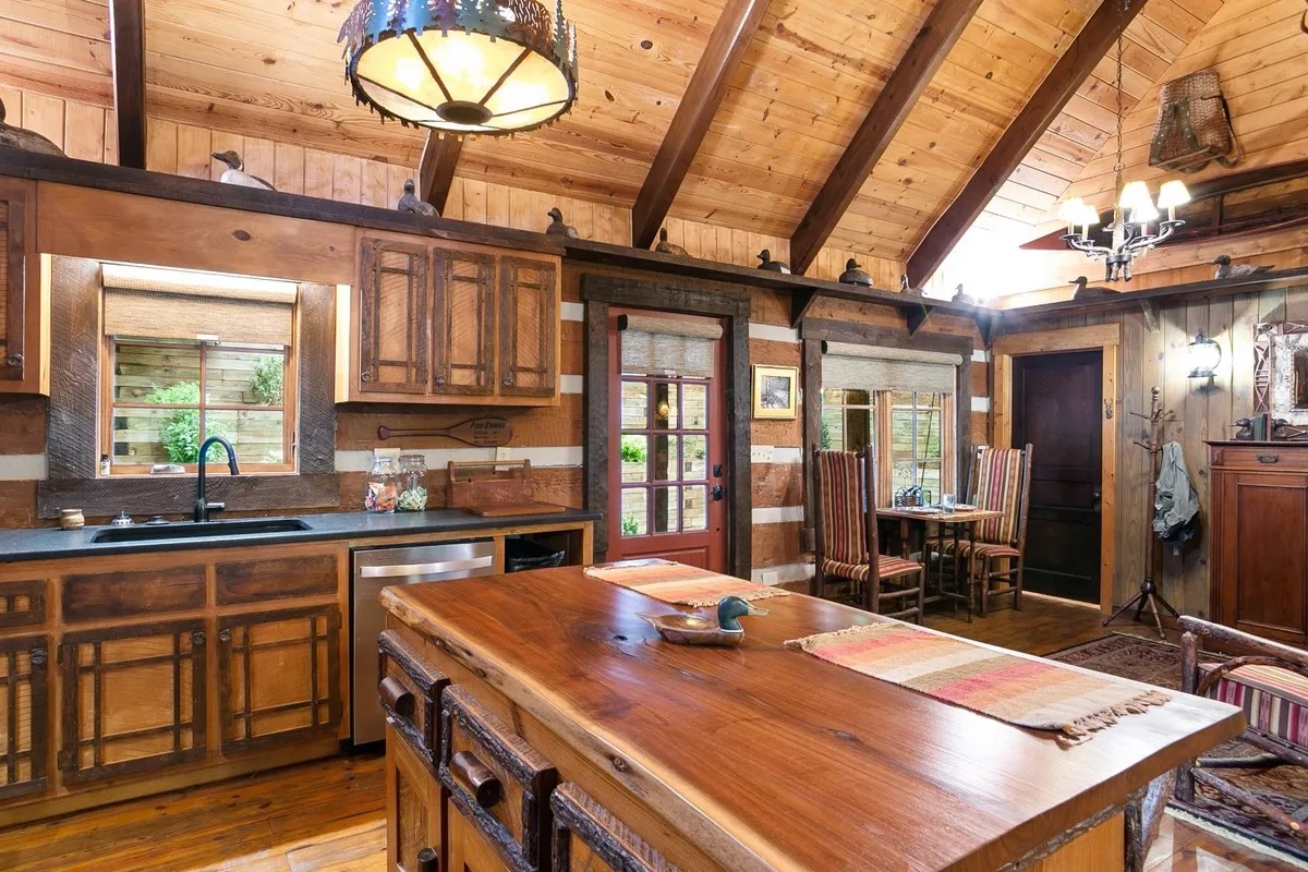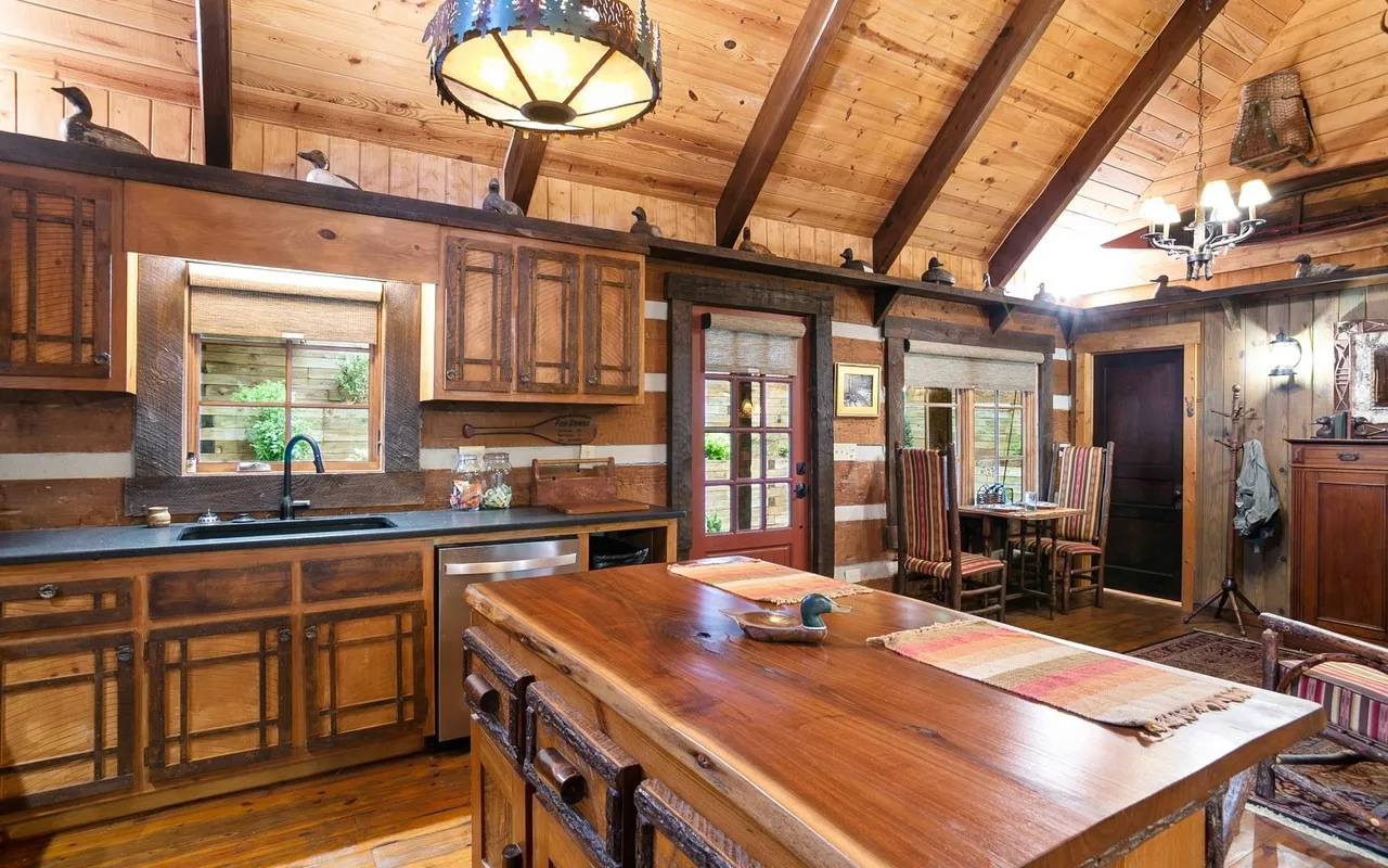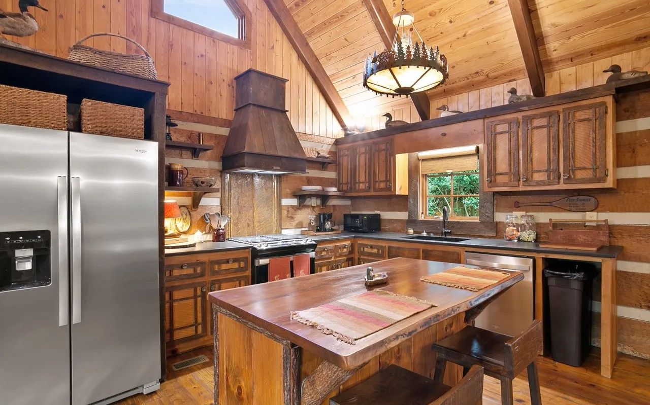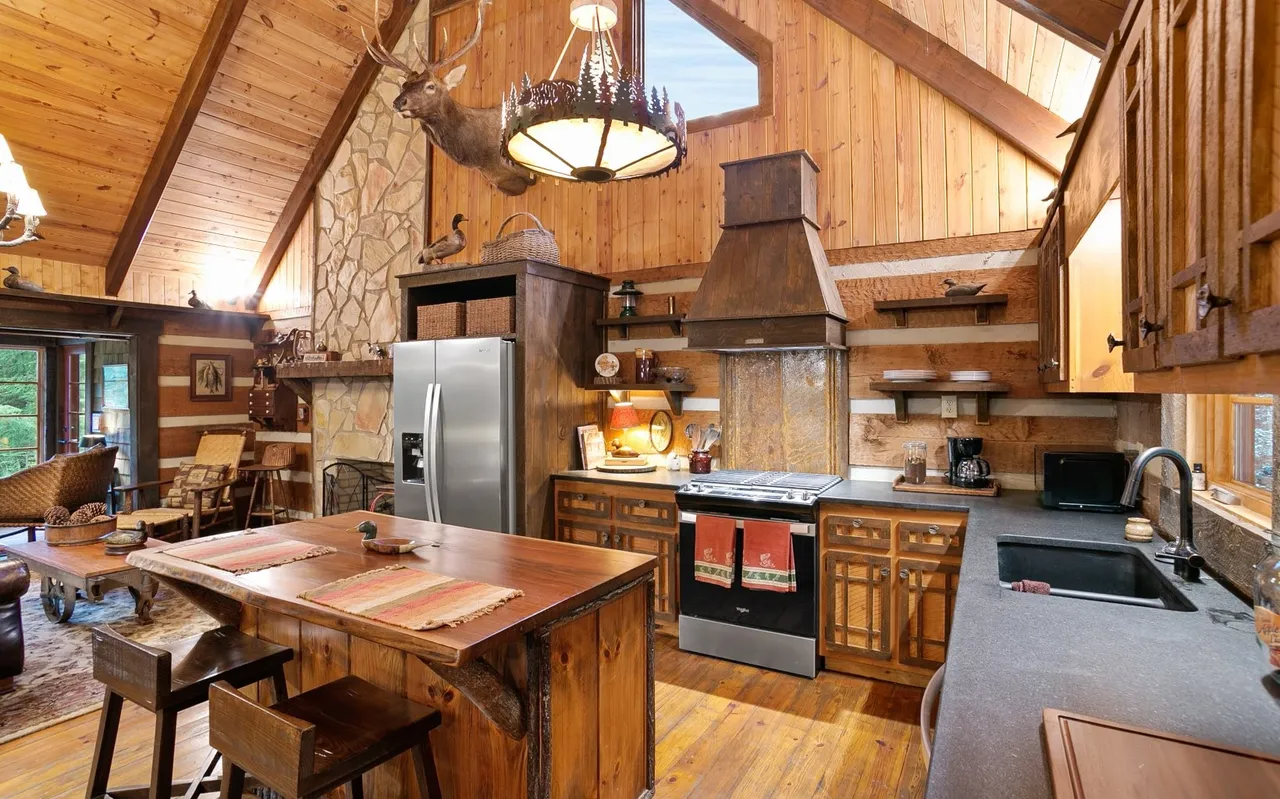 • Sun-Drenched Living: A highlight of the cabin is the additional sunroom and dining area, bathed in natural light through expansive windows that offer panoramic views of the river. It’s the perfect spot for your morning coffee or an afternoon of reading while listening to the "loud rushing water" just outside.