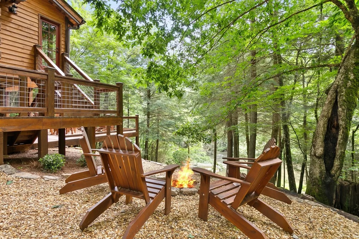 Welcome to The Mayfly, an elegant fly-fishing retreat and mountain sanctuary nestled on the rushing waters of the Cartecay River. Located at the end of a private drive in the desirable Blackberry Mountain community, this cabin offers the rare combination of total privacy and easy access to the best of North Georgia. Whether you are looking for a creative sabbatical, a remote work escape, or a restful family retreat, The Mayfly provides a soulful home away from home for your month-long stay.
